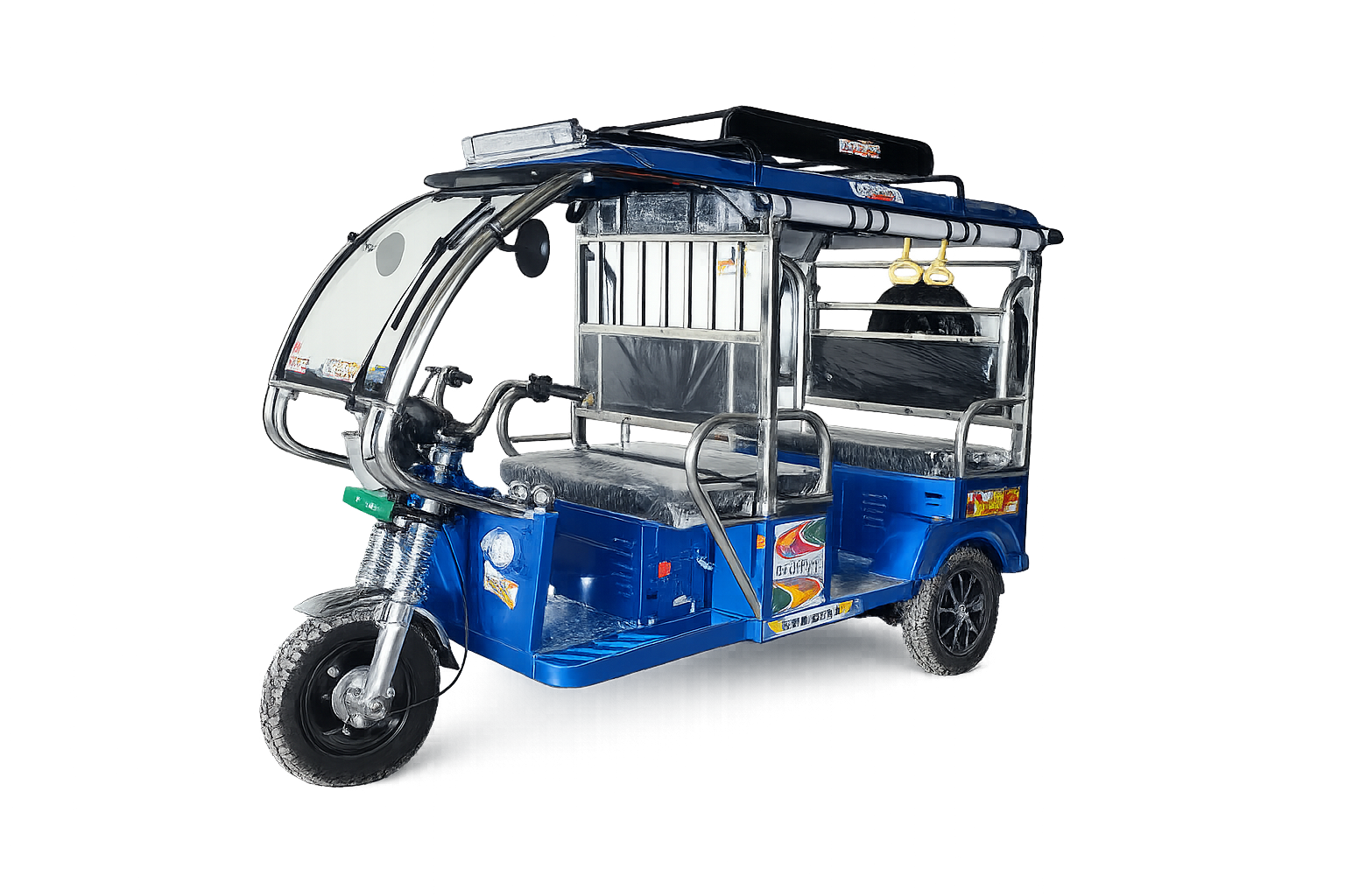 High performance electric rickshaw with powerful motor, long battery life and heavy-duty suspension. Perfect for commercial and passenger transport.